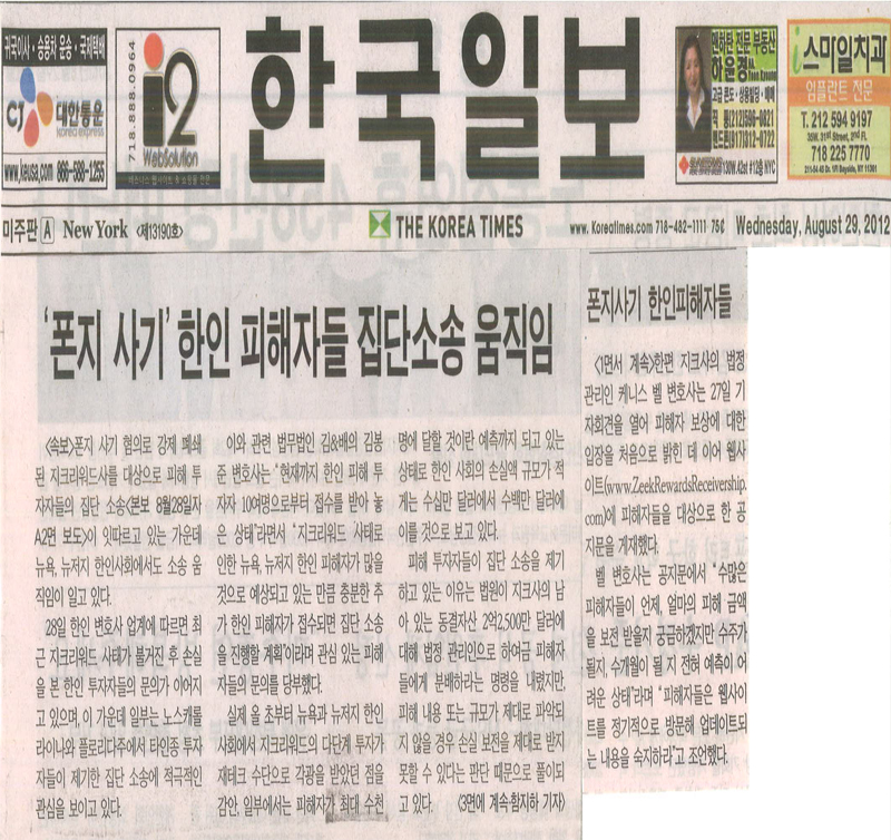 [The Koreatimes] ‘폰지 사기’ 한인 피해자들 집단소송 움직임